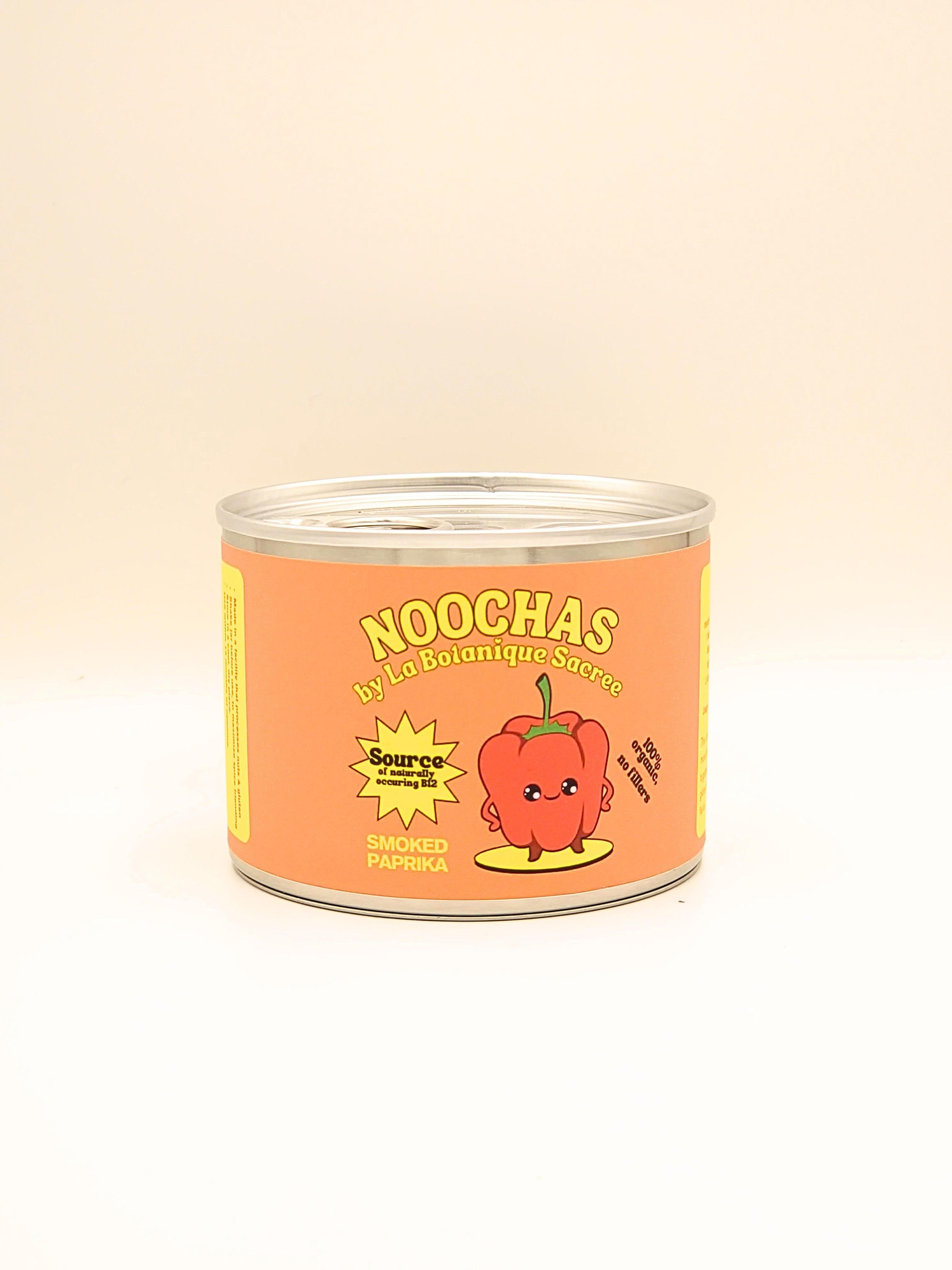 NOOCH is short 'slang' for nutritional yeast. It brings nutty, cheese-like savouriness, naturally rich in protein and B-vitamins. In SMOKED PAPRIKA it forms the foundation that carries smoke, tomato depth, and sumac lift.