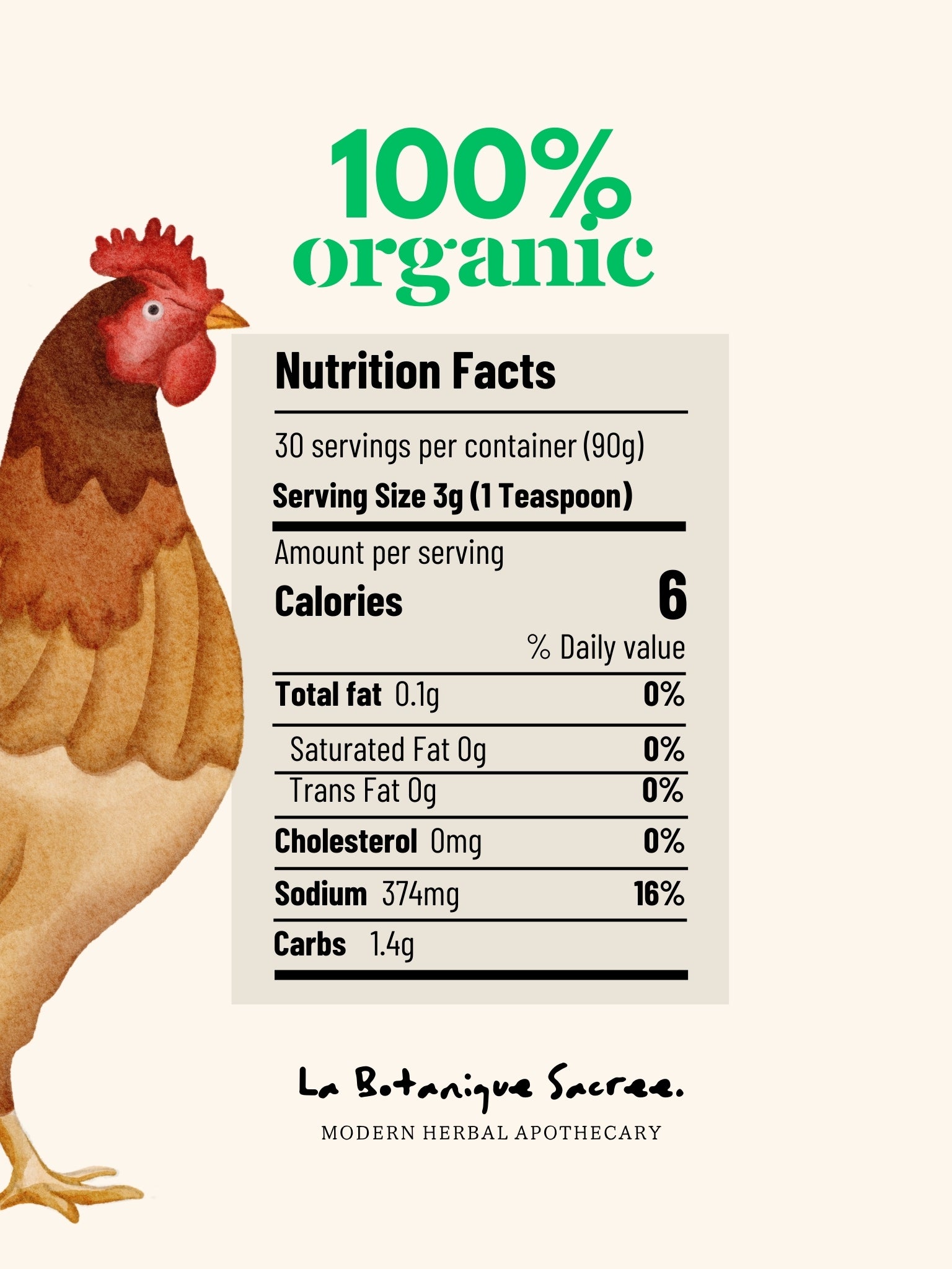 This isn’t health food that forgets to taste good. We blend for full flavor and use the finest ingredients to accomplish this. Whether it’s a morning egg or a slow Sunday stew, every sprinkle is designed to hit the senses and do the body good.