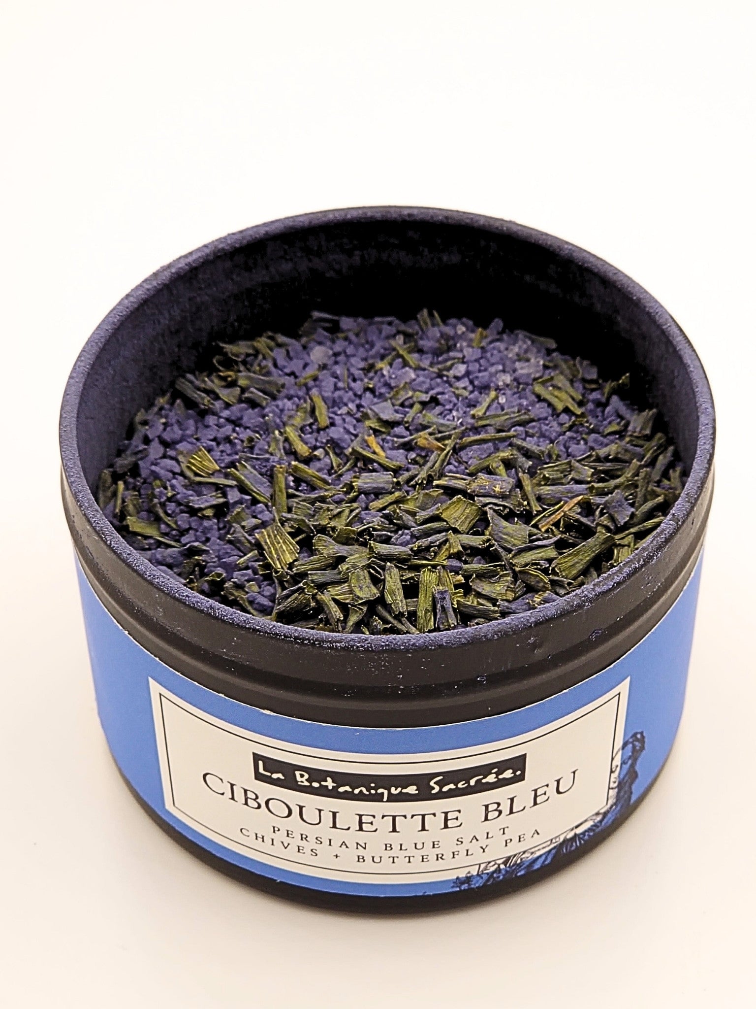 The natural indigo pigments of butterfly pea flower and the rare crystalline veins of Persian blue salt. No dyes, no additives.