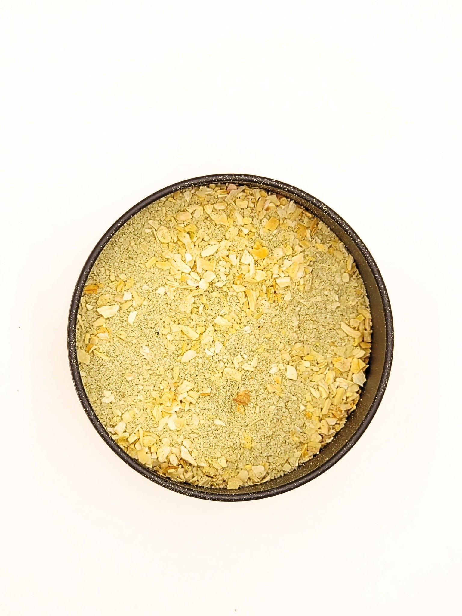 Use on eggs, potatoes, cabbage, root veg and green beans. Finish soups, braises, and roasted chicken. Fold into cultured butter or soft cheese. Dust onto salad dressings and vegetable broths for a clean herb-mineral snap.