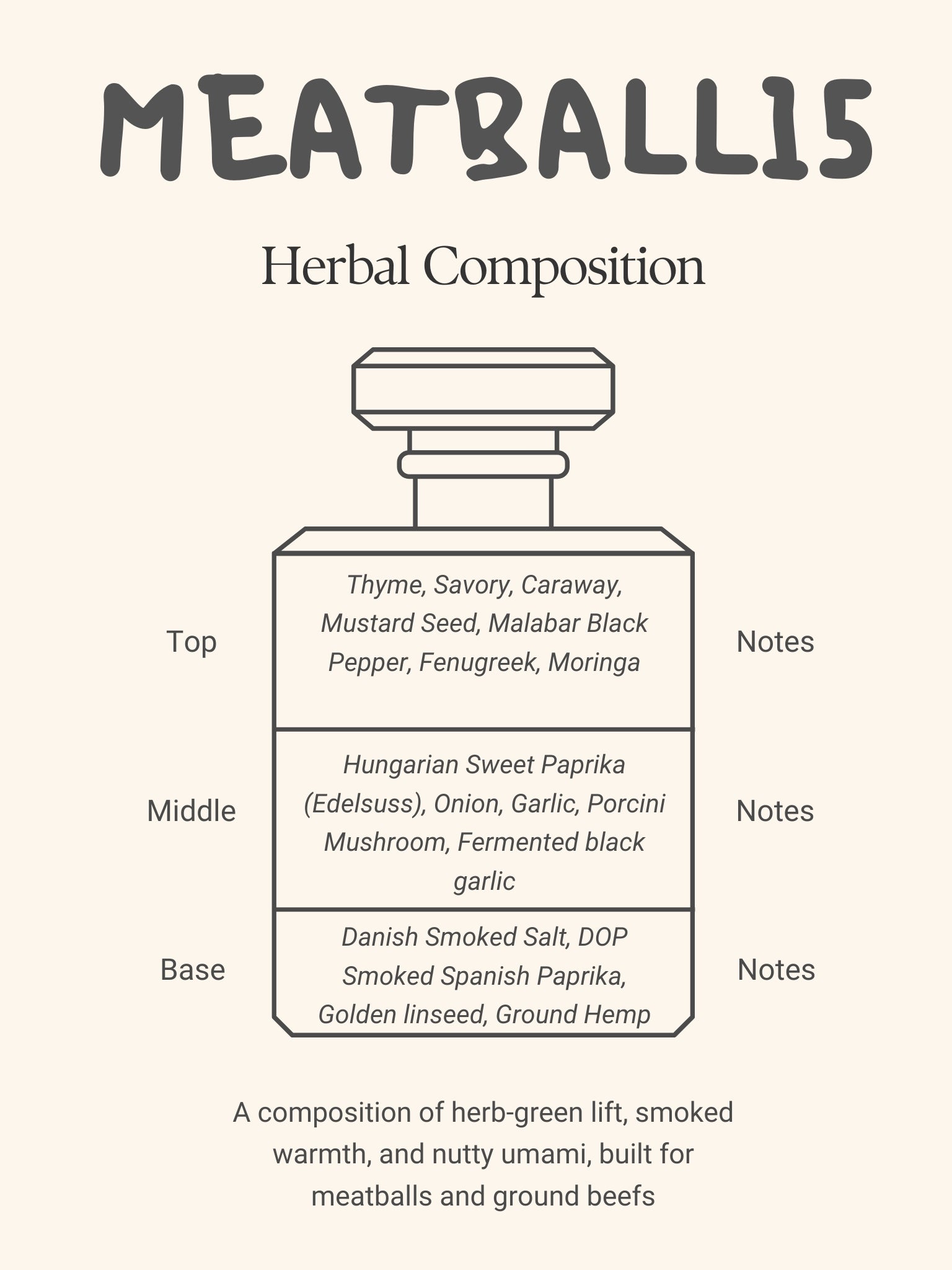 This blend is richer in herbal structure and umami depth. Porcini, black garlic, and Malabar pepper offer savory intensity, while fenugreek and caraway introduce aromatic warmth. No breadcrumbs, starches, or bulkers but just functional, concentrated flavor.