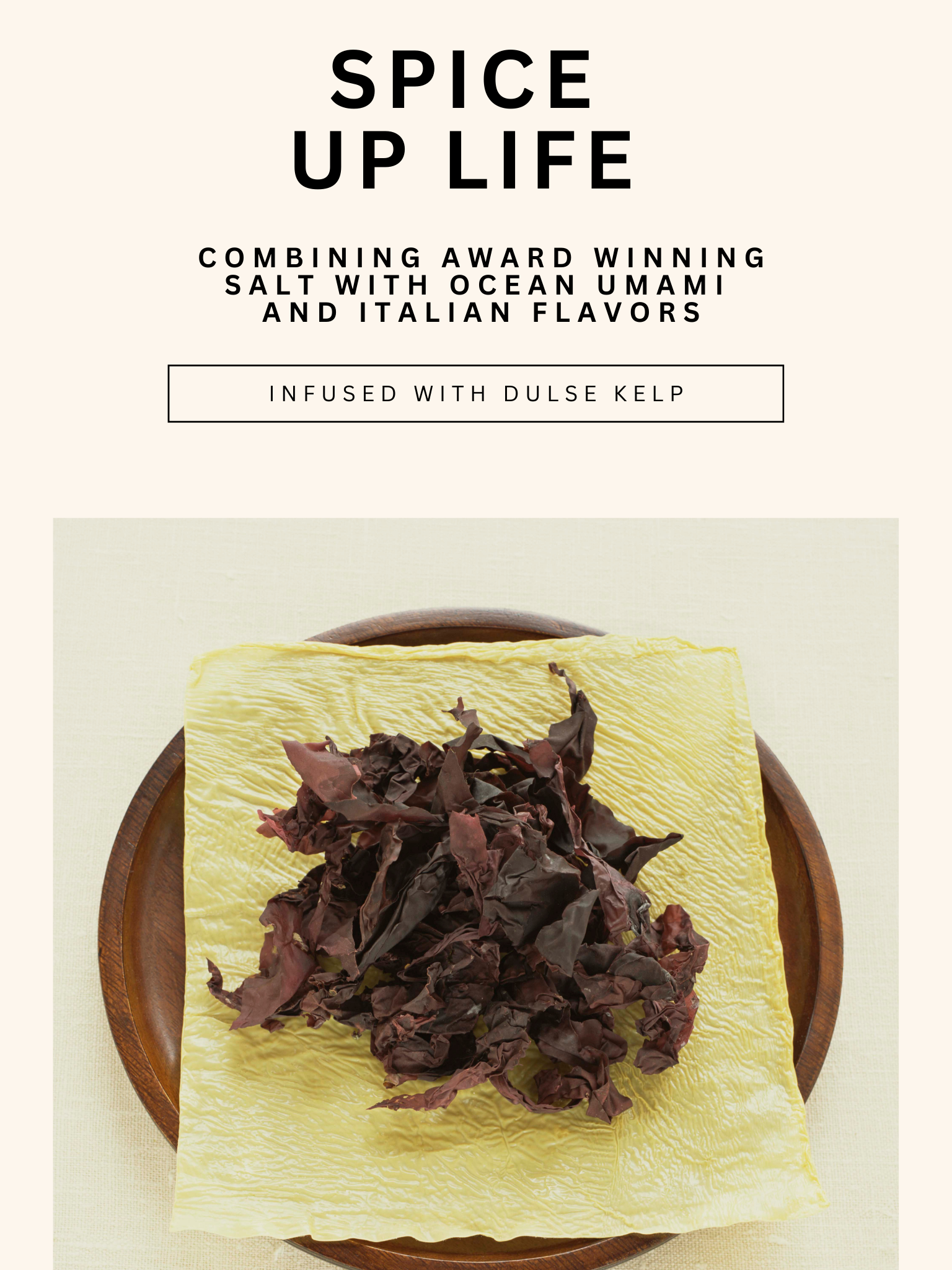 DULSE VITA is best used as a finishing salt on grilled meats, roasted vegetables, pasta, or eggs. It also blends well into compound butters and vinaigrettes.