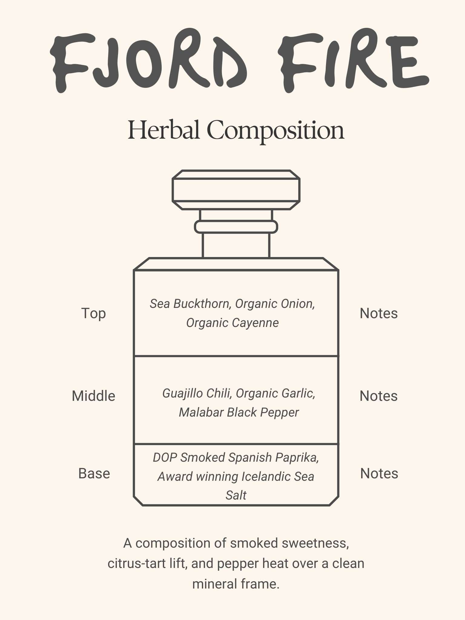 The name reflects contrast: mineral-rich Icelandic sea salt evokes clean, Arctic clarity, while the blend ignites with controlled chili fire. It’s a seasoning designed around elemental duality: cold and flame, salt and smoke.