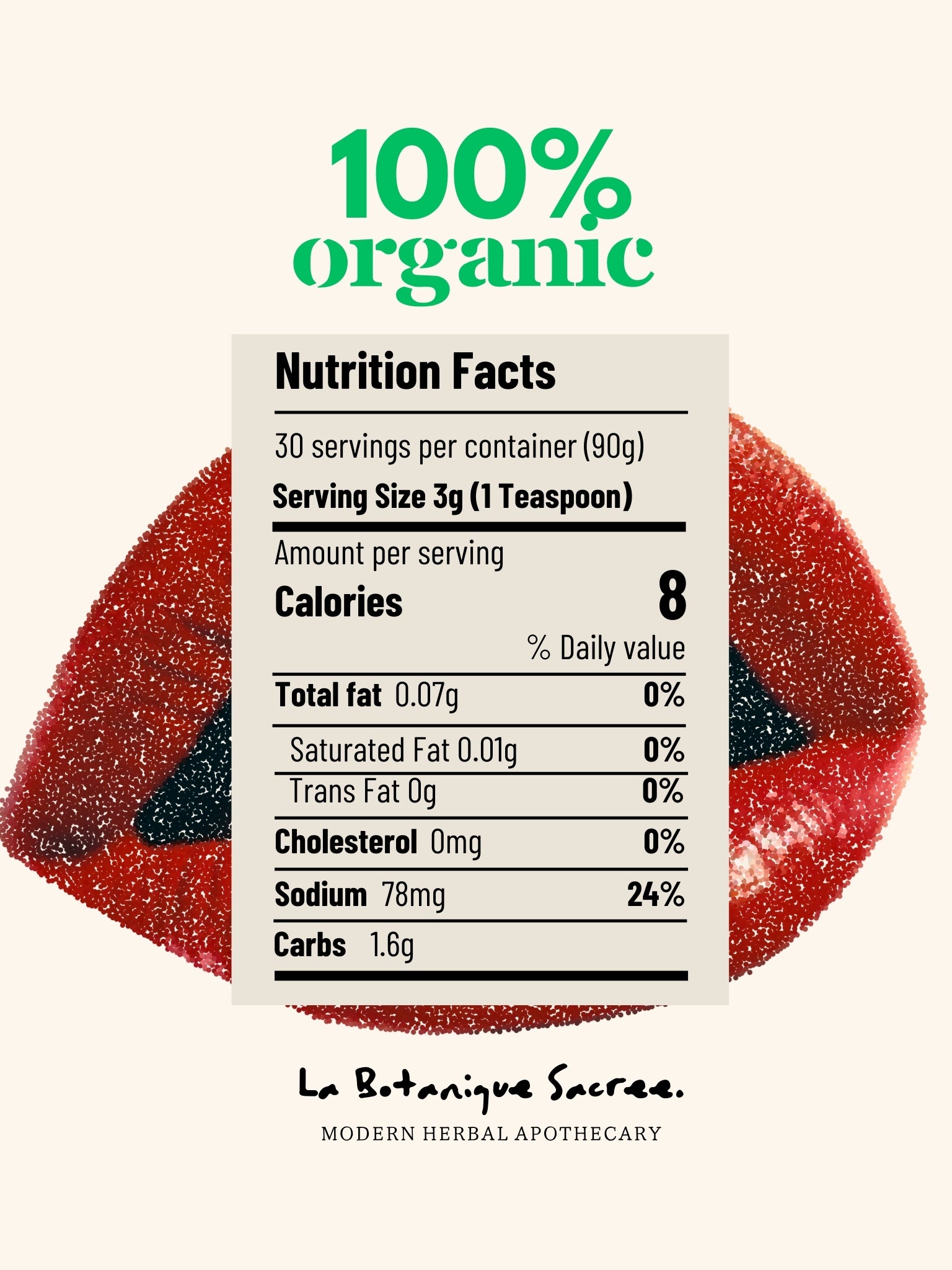 SWEETLIPS is designed for baking and finishing. Use it in shortbread, panna cotta, citrus glazes, or milk-based teas. It also works well sprinkled over oatmeal, yogurt, or roasted fruits.